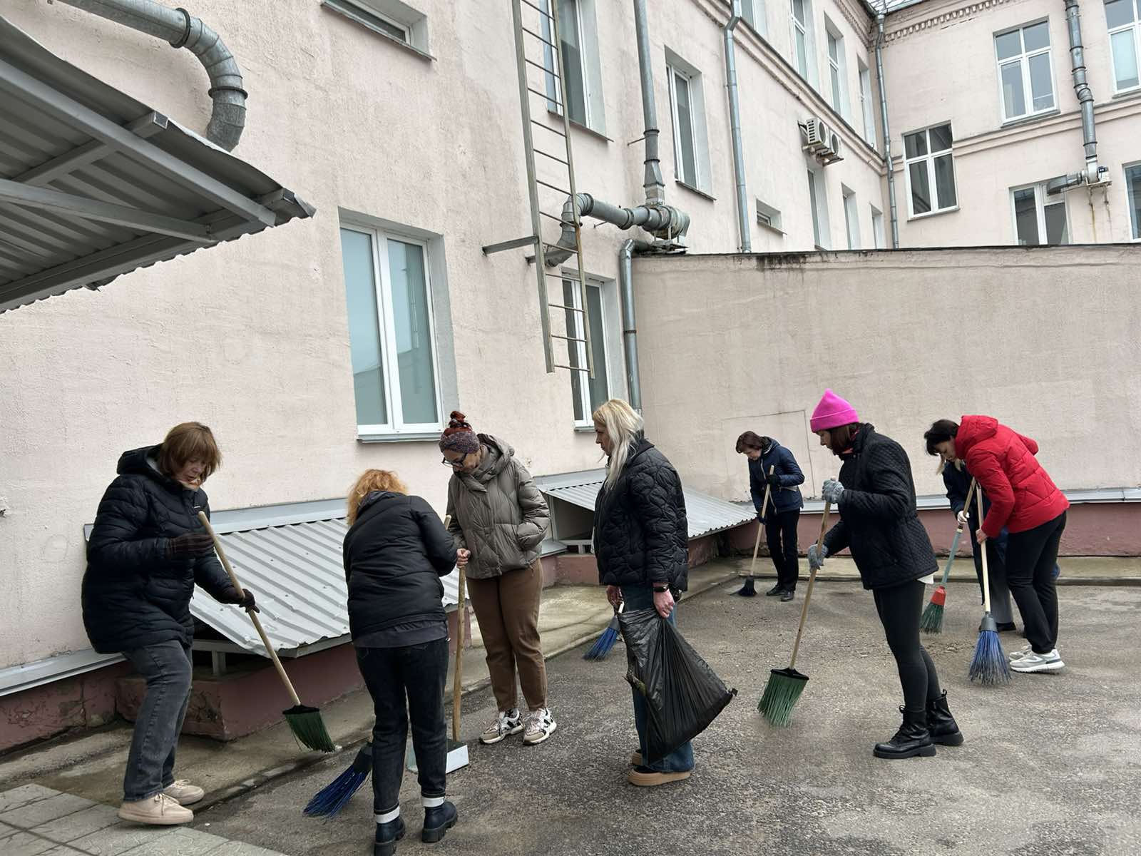 18 апреля 2026 года коллектив УЗ «МОСПК» дружно присоединился к мероприятиям по уборке и благоустройству здания и прилегающей к нему территории в рамках республиканского субботника.