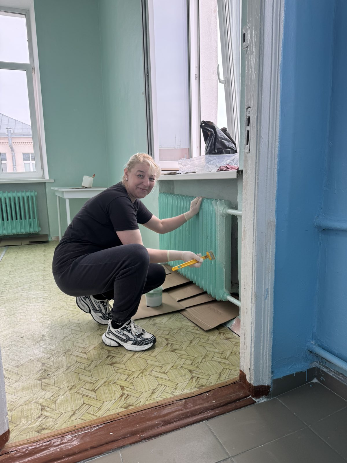 На прилегающей территории к зданию были очищены пешеходные зоны, приведены в порядок зеленые насаждения, газоны очищены от прошлогодней листвы и мусора, на рабочих местах обновлен инвентарь, окрашены батареи, почищена плитка, вымыты стены.