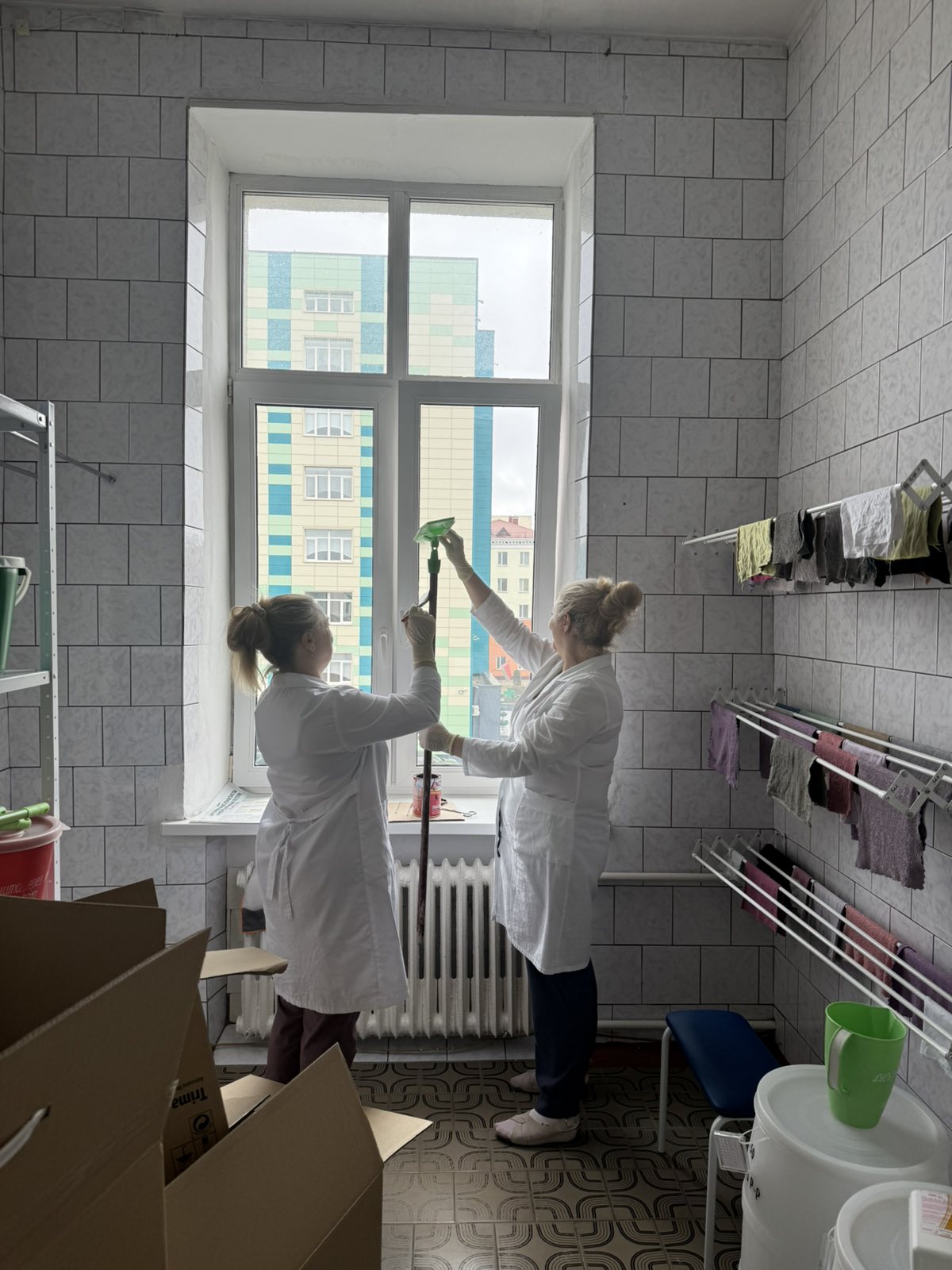 Работники сменили привычные медицинские костюмы на рабочую одежду, чтобы навести порядок на своих рабочих местах, прилегающей территории и внести свой вклад в чистоту родного города.