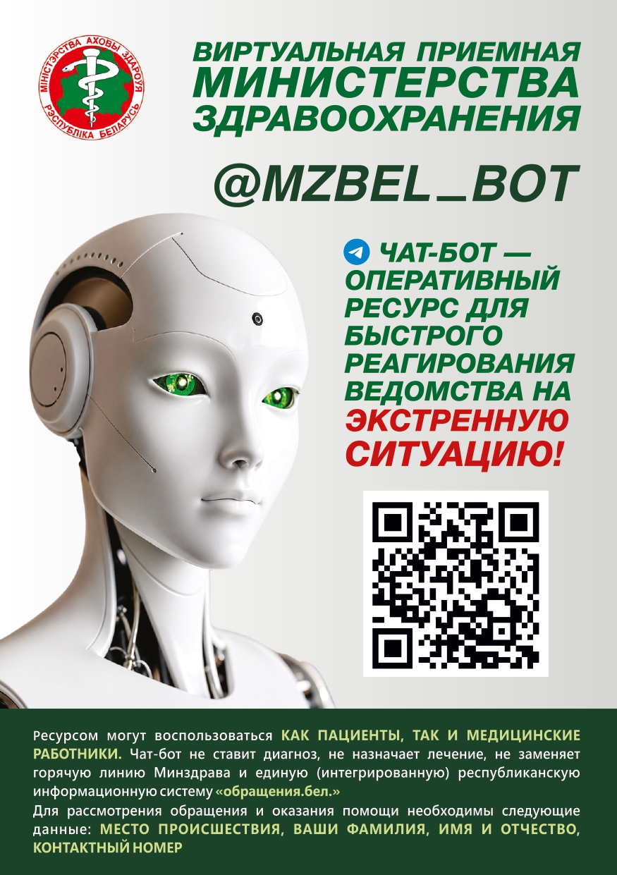 В целях повышения качества работы виртуальной приемной Министерства здравоохранения (чат-бот Минздрава) с 1 июня 2026 г. будет размещен по новому адресу: @mzbel_bot.