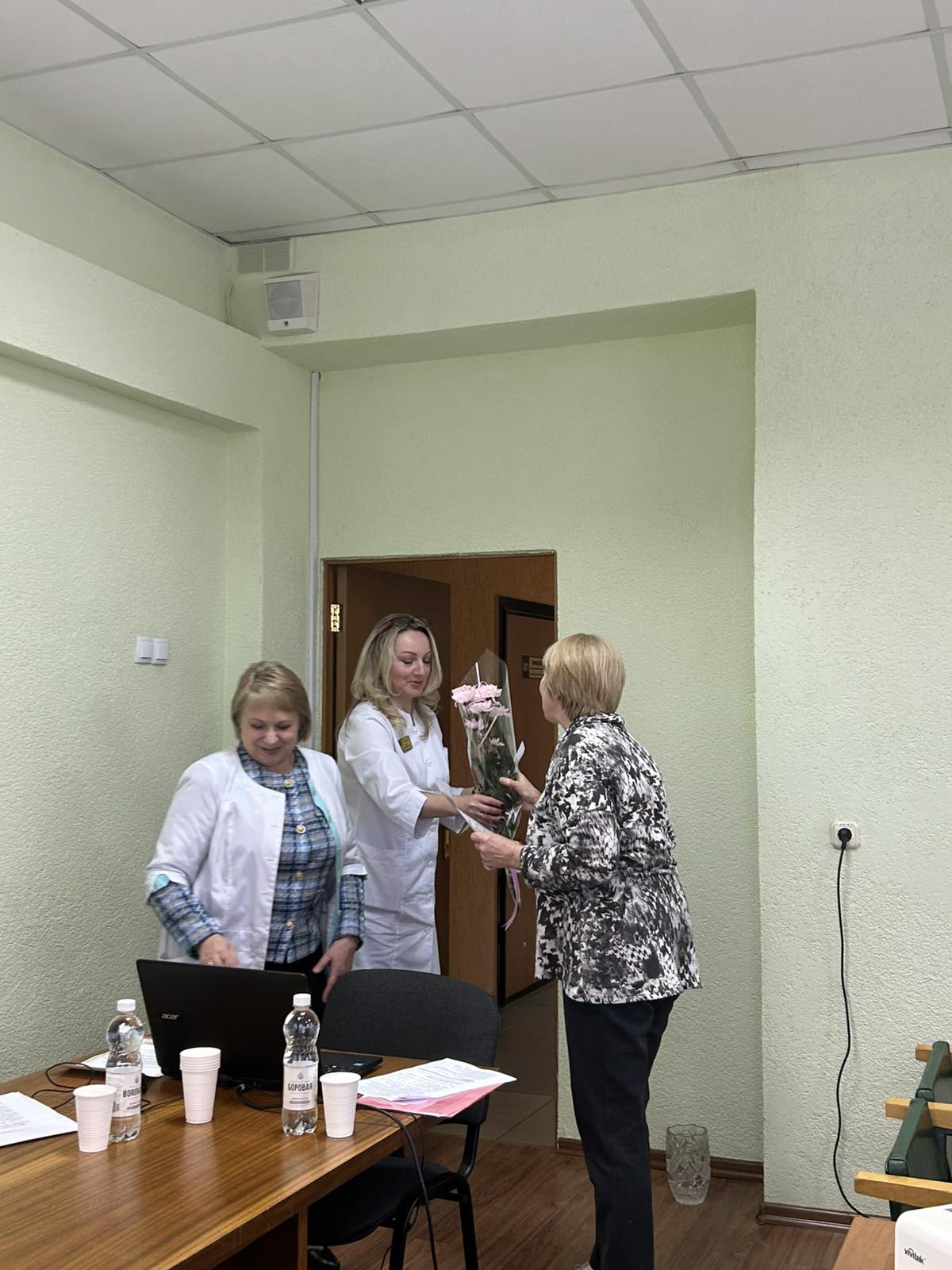 Слова благодарности выразили: заместитель главного врача (по медицинской части) Петранис С.А. и председатель профсоюзного комитета и главная медсестра Лукащук Е.В. Лучшие работники этого года были награждены грамотами и цветочными композициями. Медицинская сестра ОЗКК Громыко И.Е. была отмечена благодарностью Могилевского областного общественного объединения специалистов со средним медицинским образованием.
